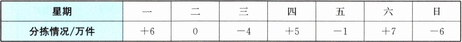 星期日:-6万件,即比计划少6万件,这是本周内负差值绝对值最大的一天,所以分拣数量最少。