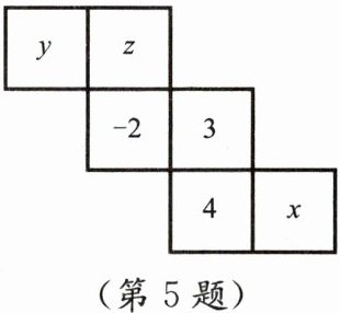 解:由正方体表面展开图可知,“y”与“3”相对,“z”与“4”相对,“-2”与“x”相对。