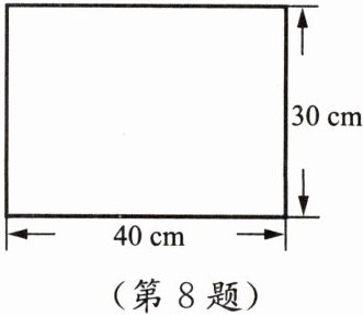 8. 如图是一张长40 cm,宽30 cm的长方形纸片,要求在长方形纸片的四个角各剪去一个小正方形,使裁剪后的纸片可以折成一个高为10 cm的无盖长方体盒子.