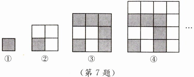 7. 我们知道,数与形之间可以相互转化.在学习“转化 表达”这节课时,小华发现课本上利用图形总结了连续奇数之和的规律,如图所示.
