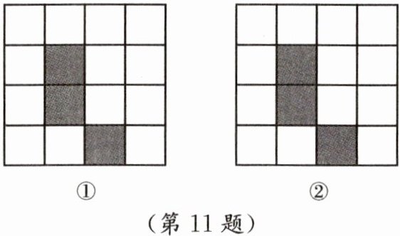 11. 如图是4×4正方形网格,其中已有三个小方格涂成了黑色.请你分别在每个网格中选一个白色小方格涂成黑色,使黑色部分的图形分别能经过翻折、旋转与自身重合.