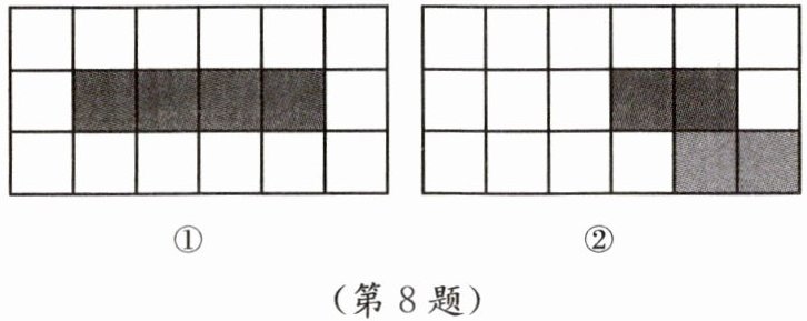 8. 如图,在无阴影的方格中选出两个方格画出阴影,使它们与图中四个有阴影的正方形一起可以折成一个正方体.(在图①和图②中任选一个进行解答,只填出一种答案即可)