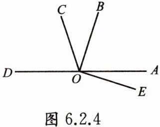 例2 如图6.2.4,$O$ 是直线 $AD$ 上一点,$\angle AOB$ 与 $\angle AOE$ 互为余角,且 $\angle AOB = 4\angle AOE$.