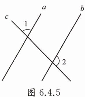 (2)如图6.4.5,$∠1= 50^\circ,$$∠2= 130^\circ,$直线a与直线b平行吗?为什么?
