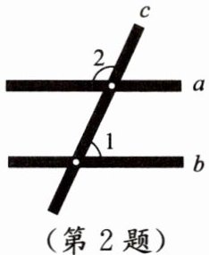 2. 如图是小明探索直线平行的条件时所用的学具,木条a,b,c在同一平面内.经测量$∠1= 60^\circ,$要使木条a//b,则∠2的大小应为$( )