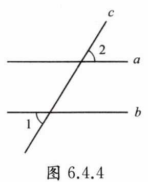(1)如图6.4.4,$∠1= 50^\circ,$$∠2= 50^\circ,$直线a与直线b平行吗?为什么?