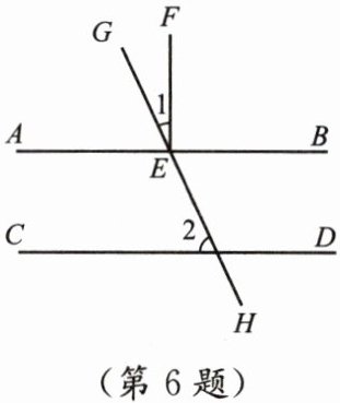 6. 如图,直线AB,CD被GH所截,EF⊥AB,垂足为E,$∠1= 30^\circ,$$∠2= 60^\circ,$AB与CD平行吗?为什么?