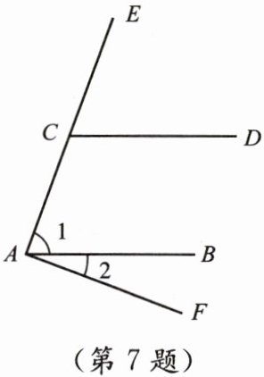7. 如图,AE⊥AF,垂足为A,$∠1= \frac{7}{2}∠2,$$∠ECD= 70^\circ,$试判断直线AB与CD的位置关系,并说明理由.