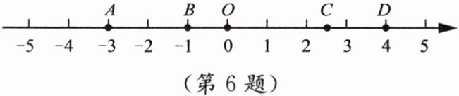 6. 如图,数轴上有五个点$A,B,C,D,O$.