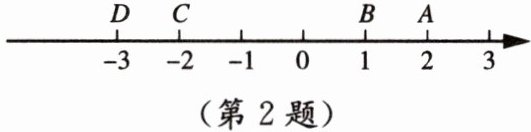 解:由图可知,点A表示的数是2,点B表示的数是1,点C表示的数是-2,点D表示的数是-3。