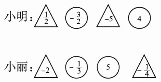 9. 有一种运算游戏,它的规则如下:从若干张“△”和“○”卡片中分别随机抽取$2$张,若抽到“△”卡片,则加上卡片上的数;若抽到“○”卡片,则减去卡片上的数.$4$张卡片上的数经过运算后,结果大的获胜.已知小明和小丽抽到的卡片分别如下: