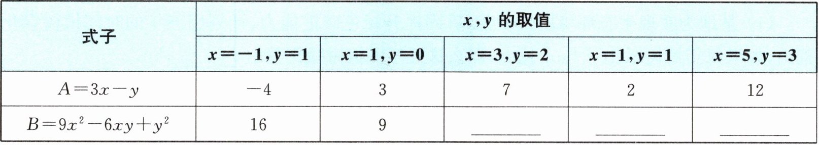 (1)需要计算在不同$x$和$y$取值下,式子$B = 9x^2 - 6xy + y^2$的值。