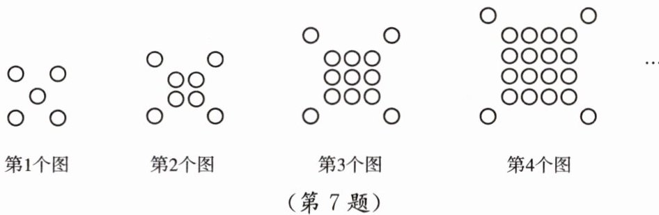 7. 如图所示的图形都由同样大小的小圆圈按一定规律组成,按此规律排列下去,请用含$ n 的代数式表示第 n $个图形中小圆圈的个数.