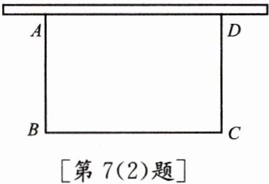 (2) 解:由图可知AB靠墙,AB为x m,则BC和AD为宽,篱笆长30 m,所以宽为$\frac{30 - x}{2}$,面积$y = x \cdot \frac{30 - x}{2}$