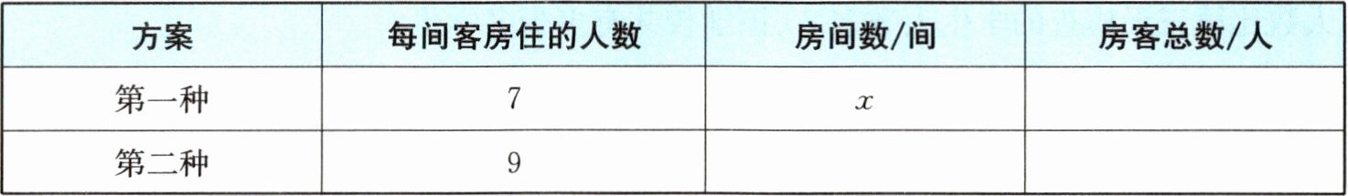 | 方案 | 每间客房住的人数 | 房间数/间 | 房客总数/人 |