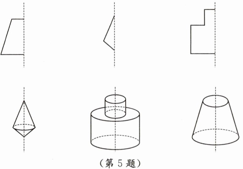 5. 如图,第一行的平面图形绕虚线旋转一周,能形成第二行的几何体.用线将平面图形与相应几何体连接起来.