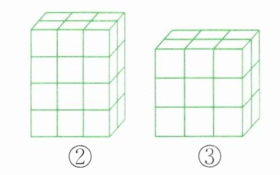 1. 下面的长方体都是用1立方厘米的正方体摆成的。请把下面的表格填写完整。