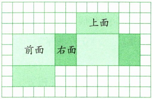 2. 右图是用棱长1厘米的正方体摆成的物体,它的体积是( )立方厘米,表面积是( )平方厘米。
