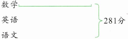 9. 明明语文、数学、英语三门考试的总分是281分,英语比数学少4分,语文比数学少9分。你知道他三门考试分别得了多少分吗?(先把线段图补充完整,再解答)
