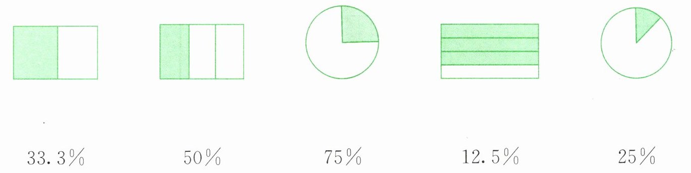 1. 估计每幅图的涂色部分占整幅图的百分之几,然后与相应的百分数连起来。