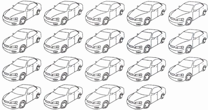 (1)4×5-1=19(辆)或 3×5+4=19(辆)或 4×4+3=19(辆)