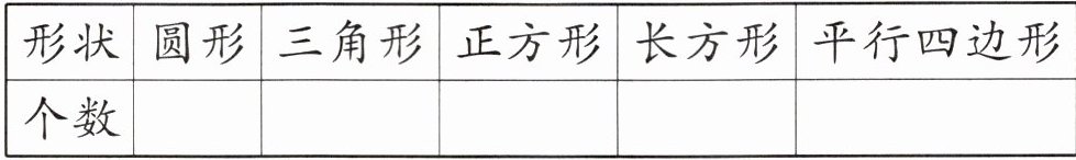(1) 先按形状分类,再把结果记录在下表中。