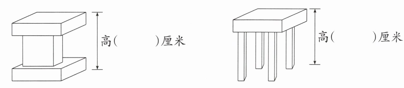 用上面的积木搭成下面的图形,它们的高分别是多少厘米?