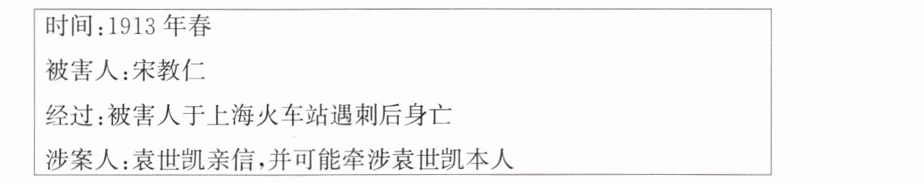 B 【解析】袁世凯就任临时大总统后,为了建立独裁统治,一再破坏责任内阁制。宋教仁遇刺案的发生反映出袁世凯建立独裁统治的野心。故选B项。