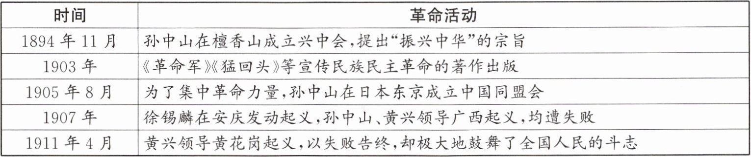 (1)作用:民主革命志士们早期的革命活动壮大了革命力量,宣传了革命思想,鼓舞了革命斗志,为辛亥革命的胜利奠定了思想和组织基础;积累了武装斗争的军事经验。