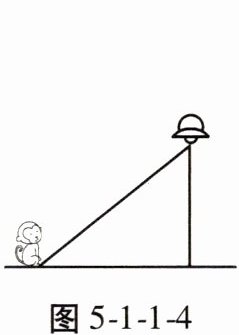 5. 如图5-1-1-4,一只小猴顺着一根斜放的竹竿往上爬,眼睛一直盯着挂在上端的灯,在小猴爬行的过程中,投在地上的影子(