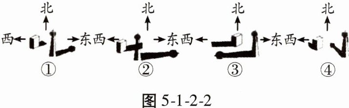 2. 如图5-1-2-2,下面是一天中四个不同时刻两座建筑物的影子,将它们按照时间先后顺序排列正确的是(