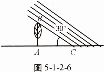 9. 某数学兴趣小组利用树影测量树高。如图5-1-2-6,已测出树AB的影长AC为12 m,并测出此时太阳光线与地面成30°夹角。