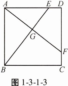 【例2】如图1-3-1-3,在正方形ABCD中,点E,F分别在AD,CD上,且DE = CF,AF与BE相交于点G。