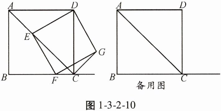 10. (分类讨论)如图1-3-2-10,四边形ABCD为正方形,点E为线段AC上一点,连接DE,过点E作EF⊥DE,交射线BC于点F,以DE,EF为邻边作矩形DEFG,连接CG。