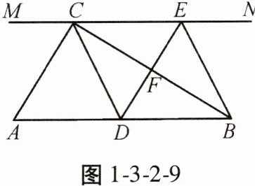9. 如图1-3-2-9,在Rt△ABC中,∠ACB = 90°,过点C的直线MN//AB,D为AB边上一点,过点D作DE⊥BC,垂足为F,交直线MN于点E,连接CD,BE。