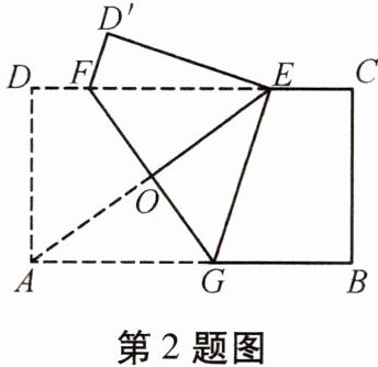 2. 如图,将矩形纸片 $ABCD$ 折叠,使顶点 $A$ 与边 $CD$ 上的点 $E$ 重合,折痕 $FG$ 分别与 $AB$,$CD$ 交于点 $G$,$F$,$AE$ 与 $FG$ 交于点 $O$。求证:$A$,$G$,$E$,$F$ 四点构成的四边形是菱形。