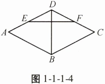 4. 如图 1-1-1-4,在菱形 $ABCD$ 中,$E$,$F$ 分别是 $AD$,$DC$ 的中点,若 $BD = 4$,$EF = 3$,则菱形 $ABCD$ 的周长为