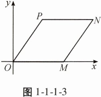 2. 如图 1-1-1-3,在平面直角坐标系中,菱形 $MNPO$ 的顶点 $P$ 的坐标是$(3,4)$,则顶点 $M$,$N$ 的坐标分别是(
