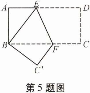5. 如图,将矩形纸片 $ABCD$ 折叠,使点 $D$ 与点 $B$ 重合,点 $C$ 落在点 $C'$ 处,折痕为 $EF$,若 $AB = 1$,$BC = 2$,则 $\triangle ABE$ 和 $\triangle BC'F$ 的周长之和为 (