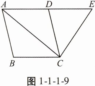 9. 如图 1-1-1-9,已知四边形 $ABCD$ 是菱形,延长 $AD$ 至点 $E$,使 $AE = 2AB$。