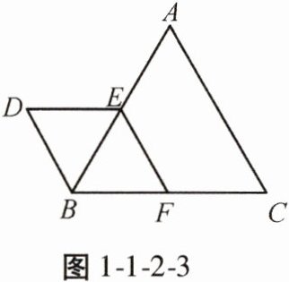 【例3】如图1-1-2-3,△ABC和△BDE都是等边三角形,点E,F分别为AB,BC边的中点。求证:四边形BDEF为菱形。
