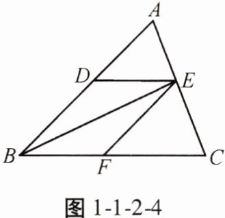 1. 如图1-1-2-4,在△ABC中,DE//BC,EF//AB,要判定四边形DBFE是菱形,还需添加的条件是(