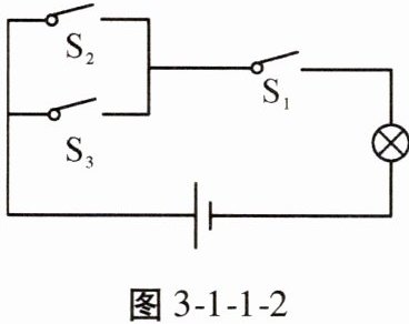 7. 如图3-1-1-2,若随机闭合开关$S_1,S_2,S_3$中的两个,能让灯泡发光的概率是(