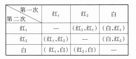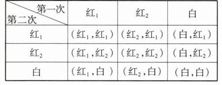 由表格可知,一共有6种可能出现的结果,它们是等可能的,其中“两次都摸到红球”有2种,