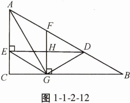 10. 如图1-1-2-12,在△ABC中,D是AB上一点,DE⊥AC,垂足为E,F是AD的中点,FG⊥BC,垂足为G,与DE交于点H。若FG= AF,AG平分∠CAB,连接GE,GD。