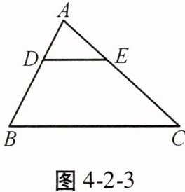【例 2】如图 4 - 2 - 3,在 $\triangle ABC$ 中,$DE // BC$,$AD = 2$,$AE = 3$,$BD = 3.5$,求 $AC$ 的长。