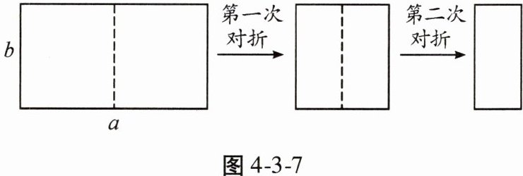 8. 如图 4 - 3 - 7,取一张长为 $a$,宽为 $b$ 的长方形纸片,将它对折两次后得到一张小长方形纸片,若要使小长方形与原长方形相似,则原长方形纸片的边 $a$,$b$ 应满足的关系是(