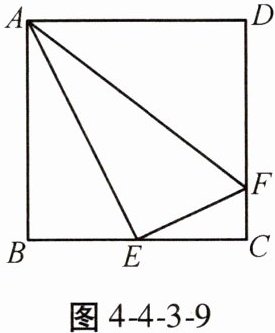9. 如图4-4-3-9,在正方形ABCD中,点E是BC的中点,DF = 3CF,猜想:△AEF与△ECF相似吗?请说明理由。