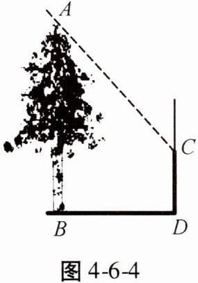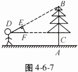 5. 如图 4 - 6 - 7,小明同学用自制的直角三角形纸板 DEF 测量树的高度 AB,他调整自己的位置,设法使斜边 DF 保持水平,并且边 DE 与点 B 在同一条直线上。已知纸板的两条直角边 DE = 0.4 m,EF = 0.2 m,测得边 DF 离地面的高度 AC = 1.5 m,CD =