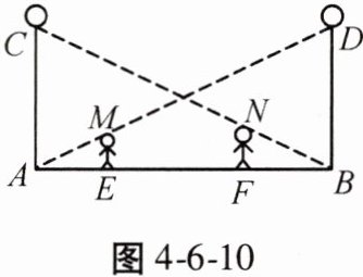 8. 小颖、小华和小林想测量小区门口路灯的高度。如图 4 - 6 - 10,相邻的两盏路灯 AC,BD 高度相等,某天晚上,小颖站在 E 点处,此时她影子的顶部刚好接触到路灯 AC 的底部;小华站在 F 点处,此时他影子的顶部刚好接触到路灯 BD 的底部。这时,小林测得 EF = 10.2 m,已知 AB = 20 m,小颖身高 ME = 1.6 m,小华身高 NF = 1.75 m,AC,BD,ME,NF 均与地面垂直。请你根据以上数据计算路灯的高度。(结果精确到 0.1 m)